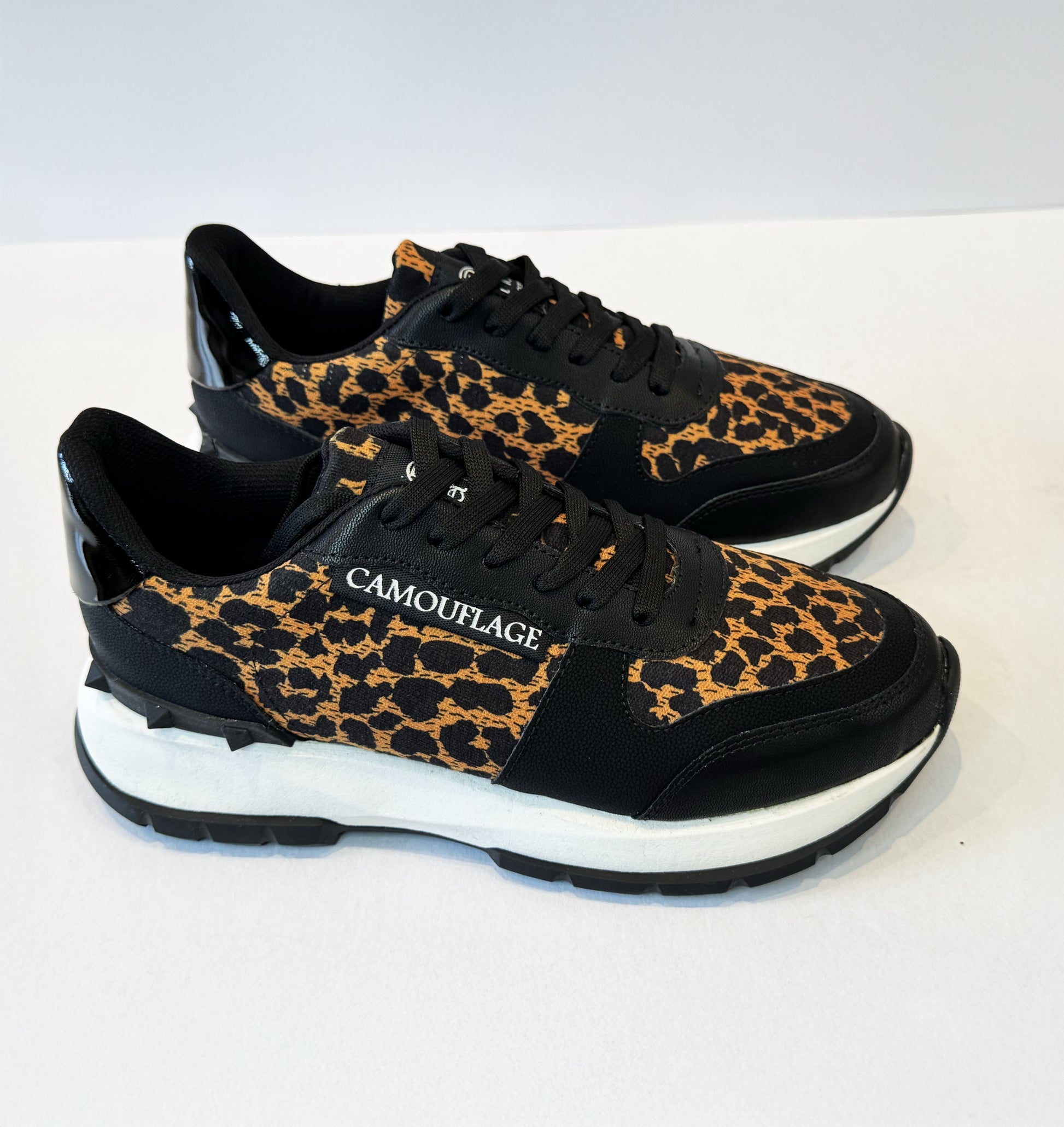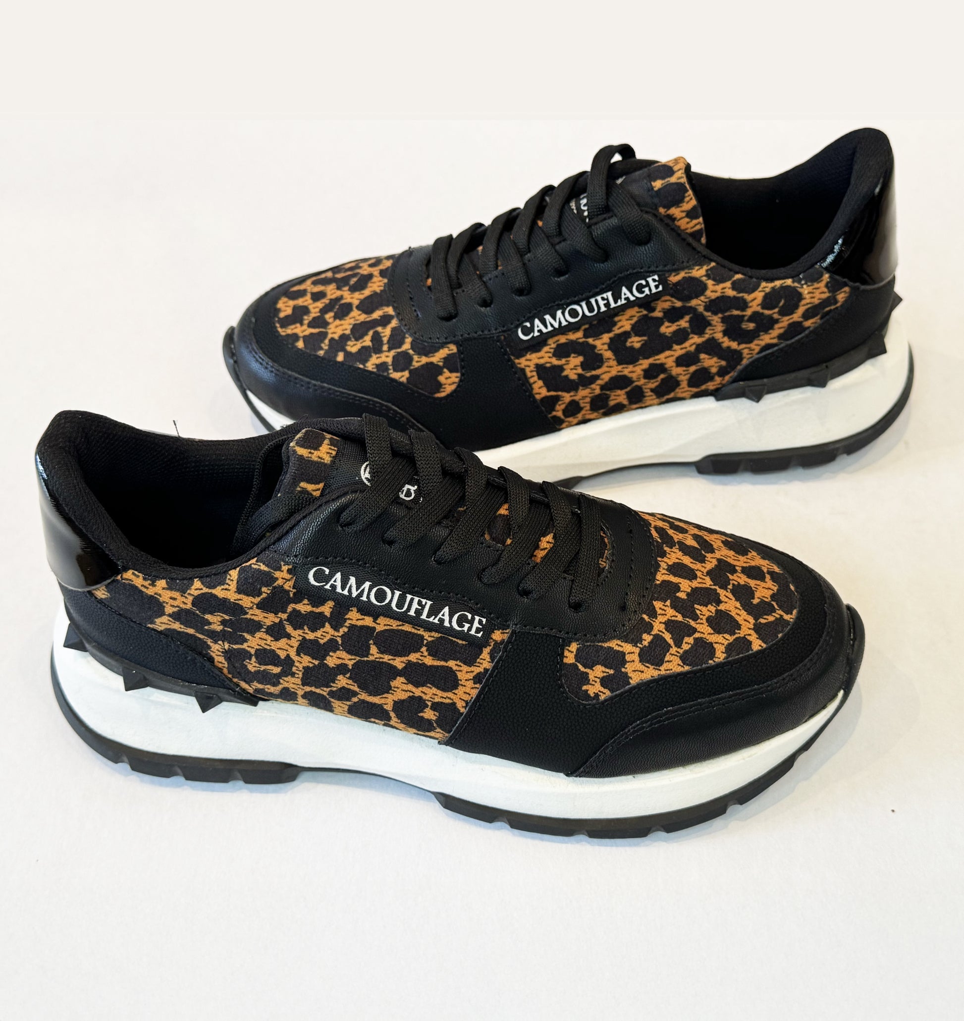 un toque chic a tu estilo diario con estos tenis animal print en tonos oscuros y construcción en tono negro con aplicaciones en relieve Tono negro para realzar y definir el estilo. Con un tacón de 3cm, estos zapatos ofrecen una combinación perfecta de comodidad y altura. Su diseño de cuña flat y estampados los hace versátiles para cualquier atuendo, mientras que la fijación de agujeta asegura un ajuste perfecto. La punta medio puntal y la textura piel completa el look sofisticado y llamativo de estos tenis.